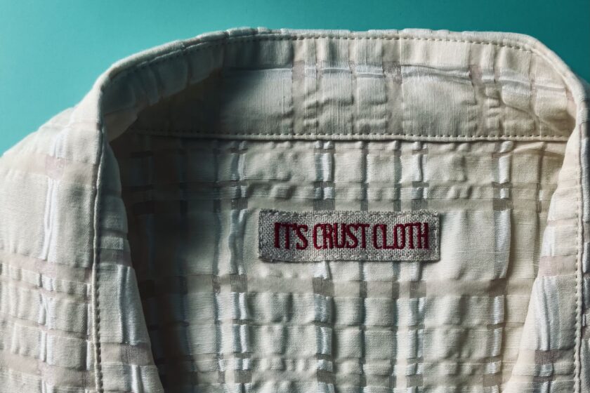 IT’S CRUST CLOTH。これがブランド名。公式の紹介によると、「洋服をつくる過程でどうしても生まれてしまう残反、いわゆる誰かが使い残した生地。それを、年代物のメゾンブランドが採用していた生地などから集め、今のファッションにフィットするかたちで生まれ変わらせている」とのこと。